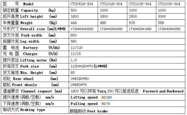 1.Stainless steel semi electric stacker adopts 304ss material, corrosion resistance and rustless.